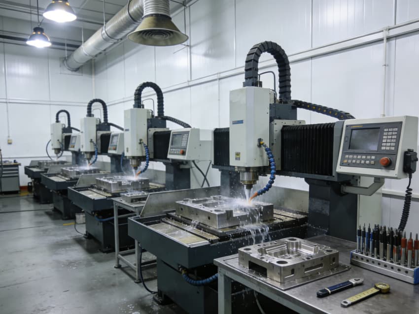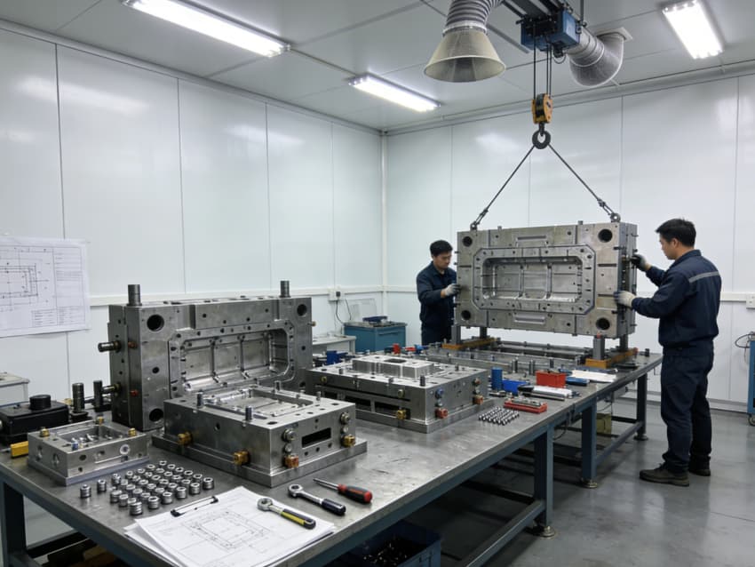 白色墻面采用工業級潔凈涂層,無縫拼接搭配圓弧陰陽角設計,杜絕積塵死角,減少粉塵對模具精度的影響。車間劃分加工區、檢測區、調試區等功能區域,布局科學合理,加工區增設阻尼減震墊層降低設備振動干擾,檢測區預留精密儀器安裝位與恒溫調控接口,各區域均配備標準化管線預埋與設備固定點位,全方位保障模具制造的精準性與穩定性。