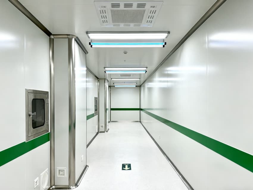 墻面用的是不容易生銹、好清潔的不銹鋼潔凈板,地面鋪的是環(huán)氧樹脂自流平材料。車間里的溫度一直保持在22℃左右(誤差不超過2℃),濕度控制在45%到65%之間。在一些關鍵區(qū)域,會保持10到15帕的正壓,這樣就能防止不同區(qū)域的藥品、原料互相污染,完全符合生物制藥的GMP規(guī)范要求。