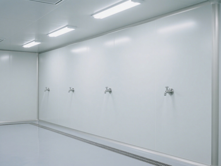 效果圖從不同視角展現(xiàn)空間優(yōu)勢:正面視角呈現(xiàn)開闊的通透格局,無設(shè)備干擾更顯規(guī)整;角落特寫聚焦圓弧墻角與無縫拼接工藝,規(guī)避積塵死角;側(cè)視角度凸顯層流送風系統(tǒng)與高效過濾裝置,直觀傳遞潔凈技術(shù)核心;局部細節(jié)圖則清晰展示地面防滑紋理、墻面抗污涂層等實用設(shè)計。?