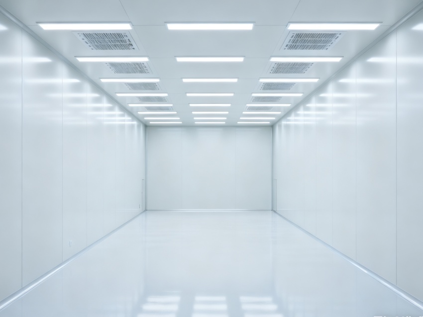 車間潔凈度嚴格遵循萬級標準(ISO8級),每立方米空氣中≥0.5μm的微粒數不超過352000個,通過初、中、高效三級空氣過濾系統實現空氣循環凈化,配合地面環氧樹脂無縫涂層、墻面不銹鋼潔凈板及圓弧角設計,減少灰塵積聚與死角。車間內溫濕度精準控制在23±2℃、45±5%RH,壓力梯度維持正壓狀態,有效阻隔外部污染物侵入,為芯片生產提供穩定、潔凈的環境,保障芯片良率與性能。